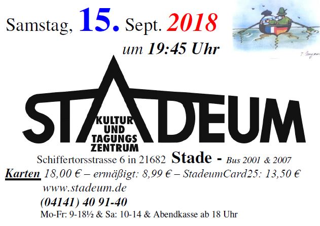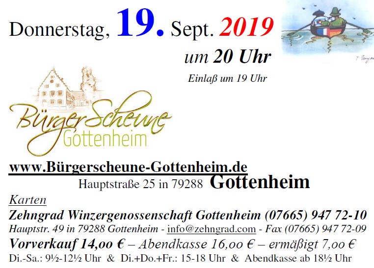 19:30 Uhr im Bürgertreff, Einlaß: 19:00 Uhr, Abendkasse € 8. Vorverkauf